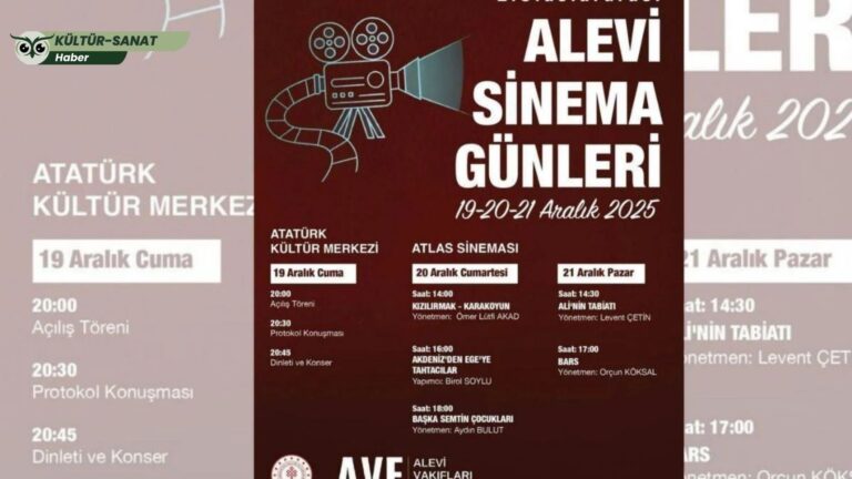 Alevi Vakıfları Federasyonu’nun düzenlediği 2. Uluslararası Alevi Sinema Günleri, bu yıl 19–21 Aralık 2025 tarihlerinde Atlas Sineması’nda sinemaseverlerle buluşacak. Alevi-Bektaşi inanç ve kültür mirasını sinema aracılığıyla görünür kılmayı hedefleyen etkinlik, kolektif hafızayı güçlendirmeyi amaçlayan zengin bir film seçkisi sunuyor.