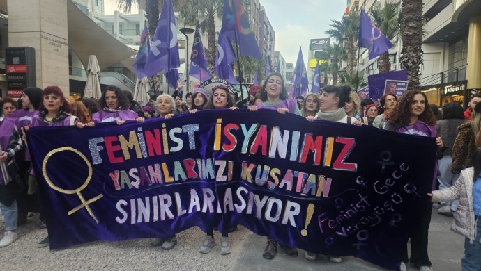 Ankara, İstanbul, İzmir, Adana, Mersin ve Antalya'da binlerce kadın ve LGBTİ+ 8 Mart kapsamında düzenlenen Feminist Gece Yürüyüşlerinde bir araya geldi. Erkek şiddetine, savaşa, yoksulluğa ve nefret politikalarına karşı yürüyen kadınlar, “Barışta ısrar ediyoruz, hayatlarımızdan elinizi çekin” mesajı verdi.