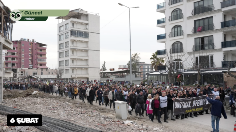 Kaymaz’ın ardından 6 Şubat Platformu adına basın açıklamasını Mehtap Aslan Yüreğir okudu. Depremin ardından üç yıl geçtiğini hatırlatan Mehtap Aslan Yüreğir, “Bu kent bütün acısına rağmen ayakta kalmak isteyen insanlara dolu. Yas hala içimizde, eksiklikler hala hayatımızda ve ne yazık ki adalet hala yerini bulmuş değil. Son dönemde sıkça bir cümle duyuyoruz: ‘Antakya yeniden ayağa kalkıyor.’ Biz de soruyoruz: Ayağa kalkan kim, nerede ve kim için? Eğer yeniden kurulan şehir eski sakinlerini dışarıda bırakıyorsa, mahalle kültürünü yok ediyorsa, insanları doğdukları yerlerden koparıyorsa, bize sorulmadan bizim adımıza karar veriliyorsa orada ayağa kalkan şey yaşam değildir. Bu yürüyüşü, parlak görsellerde, resmi anlatılarda yer almayan Hatay için yapıyoruz. Geçici barınma alanlarında hala belirsizlik içinde yaşayanlar için, sesini duyuramayanlar için yapıyoruz. Bu kent sadece yeniden inşa edilen binalardan ibaret değildir. Planlar şeffaf, kararlar katılımcı olmalıdır” dedi.
