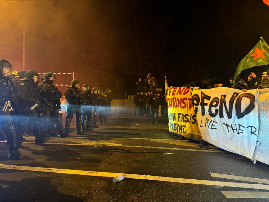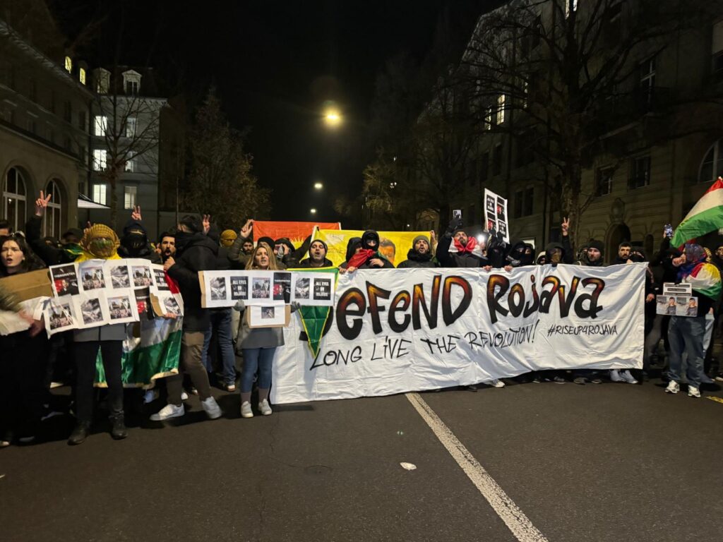 İsviçre’nin başkenti Bern’de kent merkezinde yapılan eylemde, Rojava’ya yönelik saldırılar protesto edildi. Sloganlar atan ve dövizler taşıyan kitleye polis müdahale etti, barikatlar kuruldu ve yürüyüş engellenmek istendi. Tüm müdahalelere rağmen eylemciler, Rojava ile dayanışma mesajı verdi.