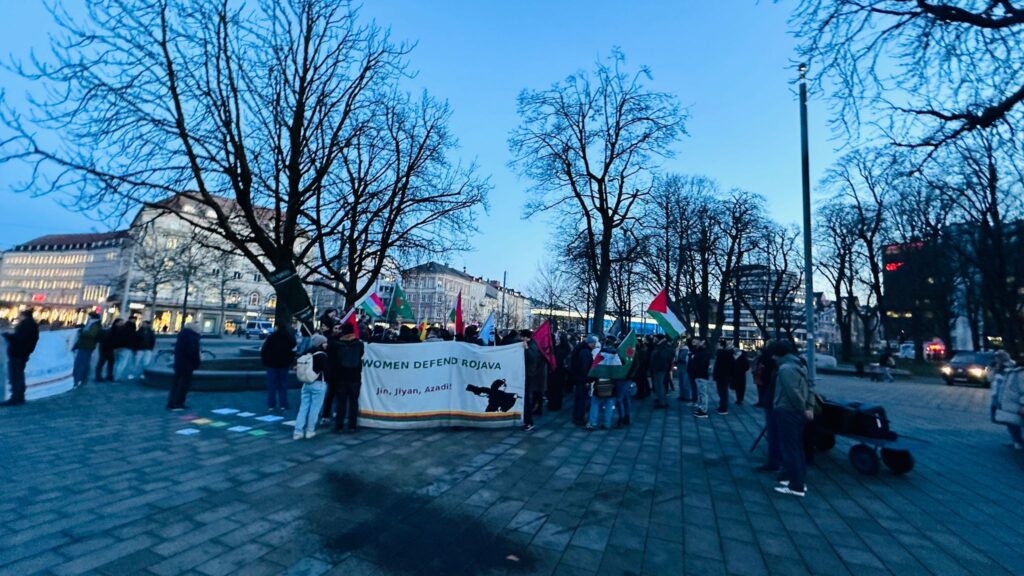 Stockholm’de Sergels Torget Meydanı’nda toplanan binlerce kişi, İsveç Parlamentosu’na yürüdü. Konuşmalarda saldırıların yalnızca Kürt halkını değil, dünyanın vicdanını hedef aldığı vurgulandı.