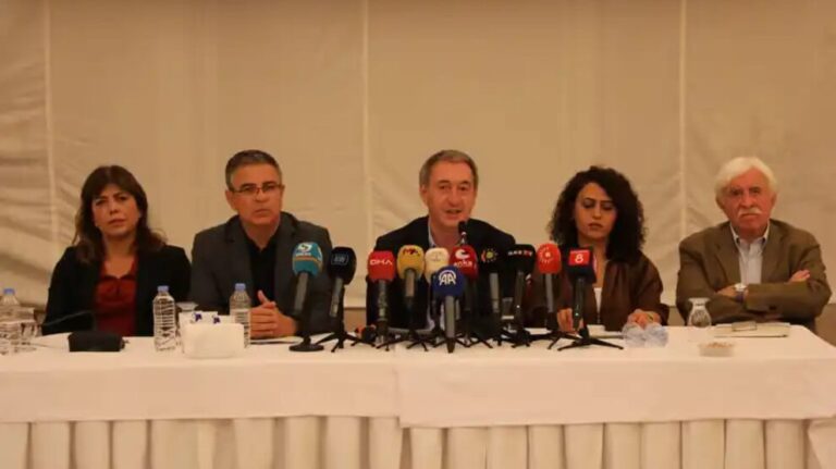 DEM Parti Eş Genel Başkanı Tuncer Bakırhan, Barış ve Demokratik Toplum Buluşmaları kapsamında Diyarbakır’da düzenlenen toplantının açılış konuşmasını yaptı. Bölge baroları ve sivil toplum kuruluşlarının temsilcilerinin katıldığı buluşmada, bir yıllık sürecin değerlendirmesi yapıldı.