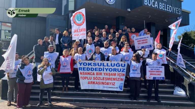 Basın açıklamasını Tüm-Bel Sen İzmir 2 No’lu Şube İdari Sekreteri Nurcan Hükenek okudu. Hükenek, aylardır haklarını alamadıklarını belirterek, “Yedi aydır süren bu durum artık bir gecikme değildir; açık bir hak ihlalidir. Daha önce takvimler açıklandı, sözler verildi, ödeme tarihleri duyuruldu. Ancak verilen sözlerin hiçbiri tutulmadı” dedi.