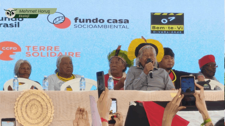 SH’nin notu: Mehmet Horuş’un resmi COP30’a ilişkin gözlemlerini de anlattığı bir diğer yazısı için bkz. “COP30 hakkında bir mekansal eleştiri denemesi”. O yazıda sözü edilen Şef Raoni, bakanlarla birlikte Halklar Zirvesi’nin sonuç bildirgesini iletmek ve liderlere iklim krizine karşı görevlerini hatırlatmak için resmi zirveye geçmiş, yukarıdaki ana fotoğrafta konuşma yaparken görülüyor.