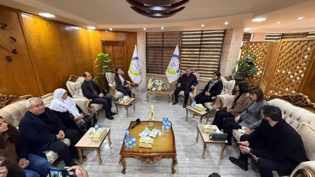 Federe Kürdistan Bölgesi’ndeki temaslarını tamamlayan heyet, daha sonra Sêmalka Sınır Kapısı üzerinden Rojava’ya geçti. Heyet, Rojava’daki ilk ziyaretini sınır kapısında bulunan PYD bürosuna gerçekleştirdi. Burada PYD Eşbaşkanları Perwîn Yûsif ve Xerîb Hiso ile yapılan görüşmede, bölgedeki son gelişmeler ve Rojava’ya yönelik saldırılar ele alındı.