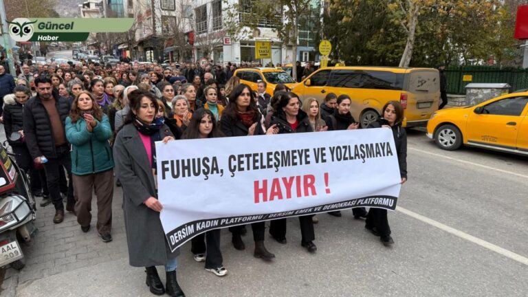 Dersim Kadın Platformu ile Dersim Emek ve Demokrasi Platformu, “Dersim’de fuhuşa, çeteleşmeye, yozlaşmaya hayır” sloganıyla Sanat Sokağı’nda yürüyüş gerçekleştirdi. Çok sayıda yurttaşın katıldığı yürüyüşte uyuşturucu ve fuhuş ağlarına karşı tepki gösterilirken, kentte yaşanan iddialara dikkat çekildi.