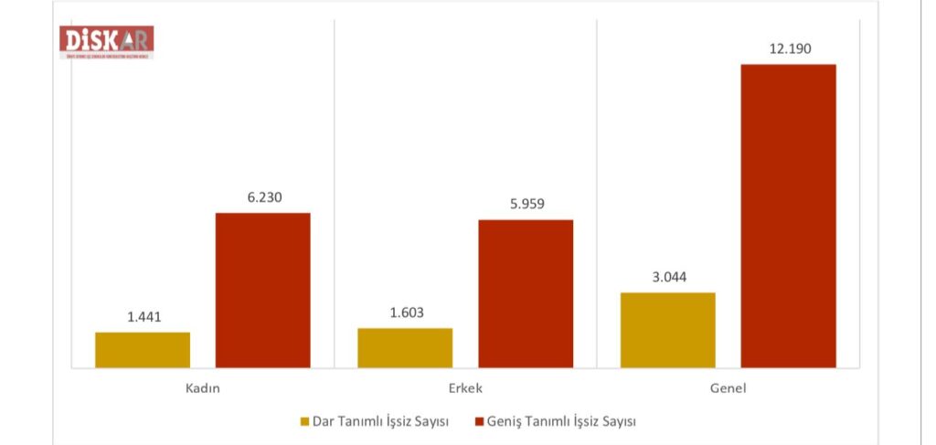 DİSK-AR’ın hesaplamalarına göre Türkiye’de geniş tanımlı işsiz sayısı 12 milyon 190 bin oldu. Son bir yılda işsizler ordusuna 1 milyon 117 bin kişi daha eklendi.
