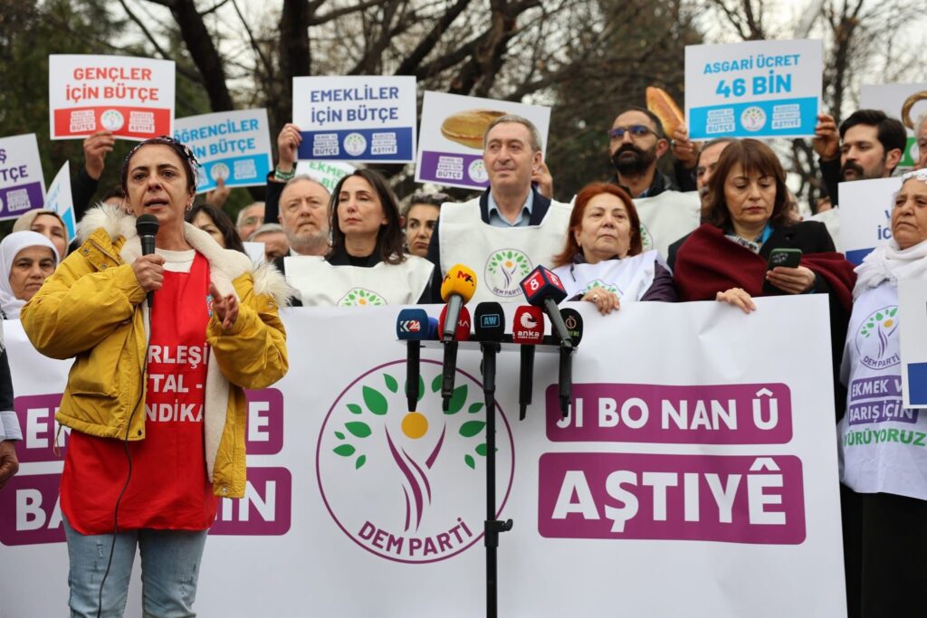 Eş Genel Başkan Tuncer Bakırhan ise yürüyüş boyunca Türkiye’nin dört bir yanından toplanan taleplerin Meclis’te savunulacağını belirtti. Bakırhan, “Bu Meclis’in derdi emekçiler değil; sermayeye, savaşa ve faiz lobilerine bütçe yapmaktır” dedi. Bütçede asgari ücretlilerin, emeklilerin, kadınların ve öğrencilerin olmadığını ifade eden Bakırhan, bütçenin ancak güçlü bir toplumsal mücadeleyle değiştirilebileceğini vurguladı.