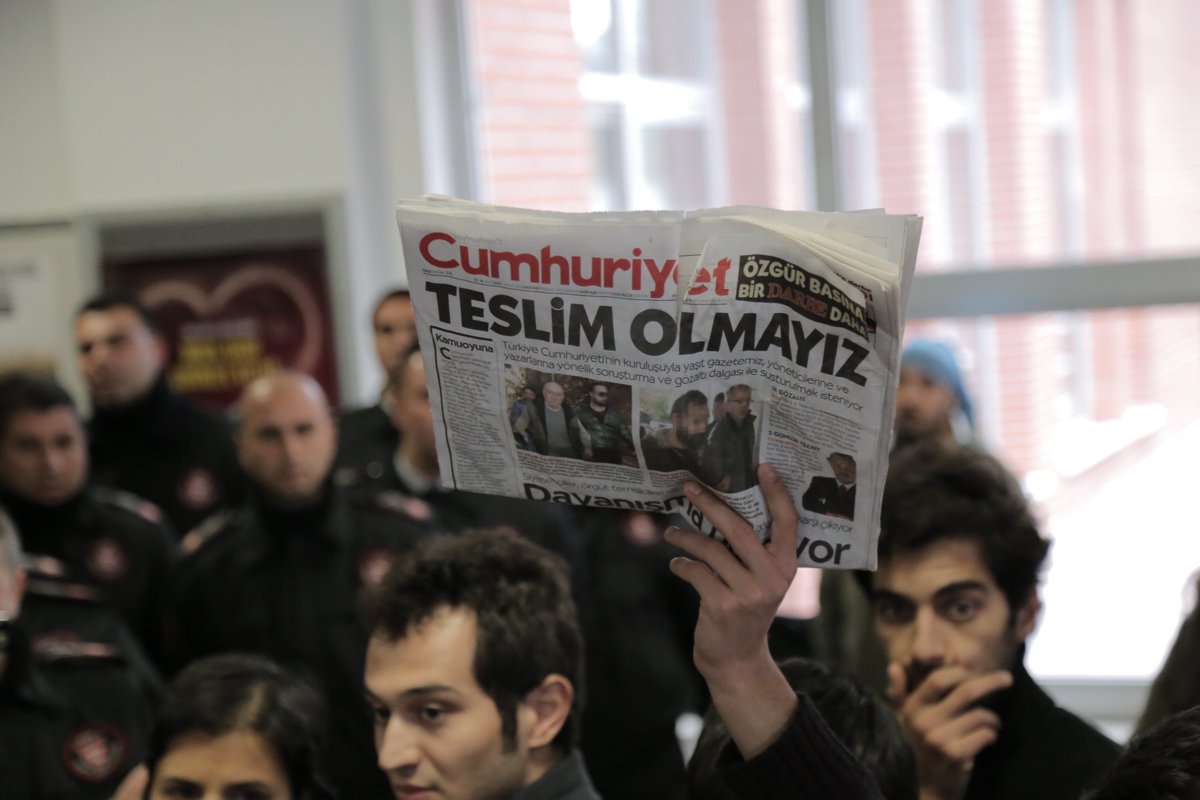 Eskişehir Anadolu Üniversitesi İletişim Fakültesi öğrencileri Cumhuriyet gazetesine yönelik operasyonu protesto etmek kantinde okuma etkinliği düzenledi.