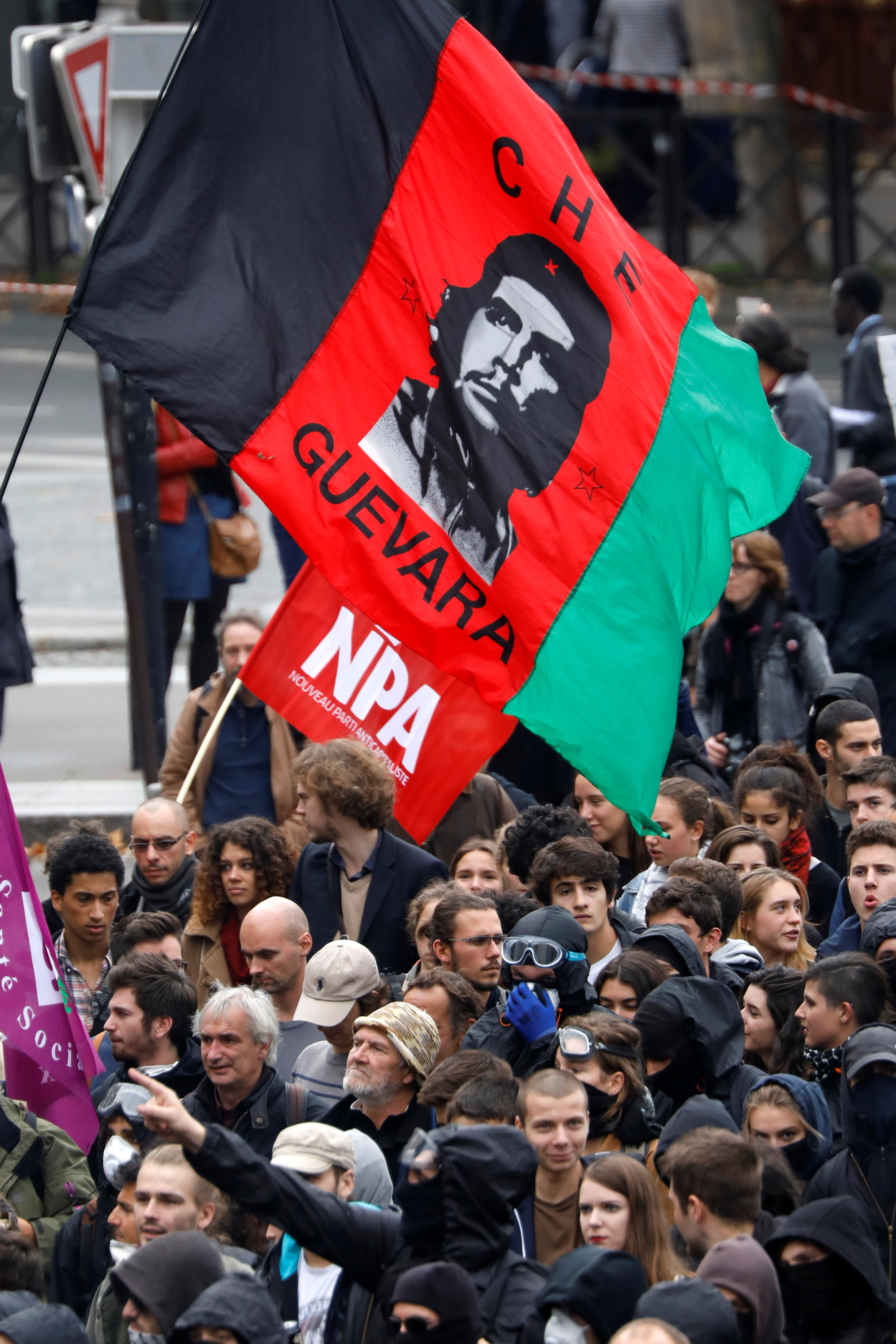 Paris’teki eylem Republique Meydanı'ndan başlayarak Nation Meydanı'nda son buldu. Eyleme katılanlar “Macron sosyal bölünmeyi derinleştiriyor” ve “Sosyal darbeye hayır” yazılı pankartlar taşıdı ve “Macron patronların başkanı” sloganı atıldı.
