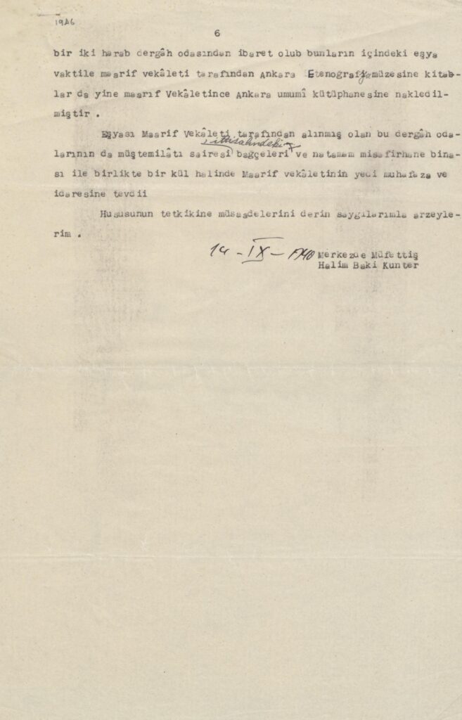 Halim Baki Kunter’in 1940 tarihli raporu: