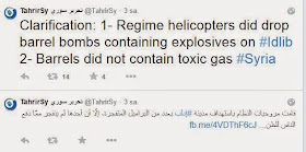Suriye ordusunun güneye çekilmesi ile ve silahlı grupların noktalarının havadan bombalanmaya başlaması ile ”klor gazı” kullanıldı iddiaları yayılmaya başladı. Akşam saatlerinde cihadçı yanlısı yerel kaynakları, geceye doğru da Al-Arabiya ve Al-Jazeera son dakika olarak ”Suriye Ordusu İdlip’te klor gazı kullandı” haberlerini girdi.