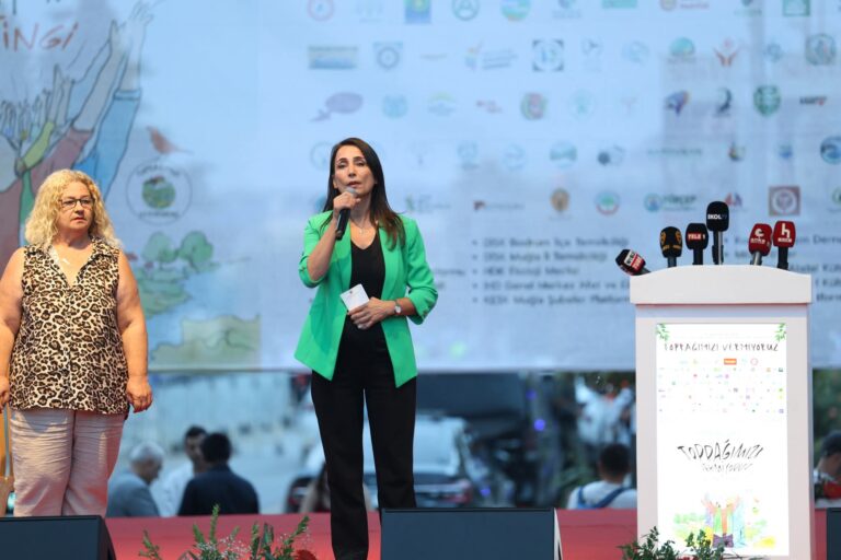 Halkların Eşitlik ve Demokrasi Partisi (DEM Parti) Eş Genel Başkanı Tülay Hatimoğulları, Muğla Menteşe Atatürk Bulvarı Miting Alanı’nda düzenlenen “Toprağımızı Vermiyoruz” mitinginde halka seslendi. Hatimoğulları konuşmasında, iktidarın doğa talanına karşı birleşik ve örgütlü mücadelenin zorunlu olduğunu belirterek, torba yasanın Anayasa Mahkemesi tarafından veto edilmesini istedi ve Muğla’daki direniş ile Şırnak Besta’daki nöbet arasındaki bağın güçlendirilmesi çağrısı yaptı.