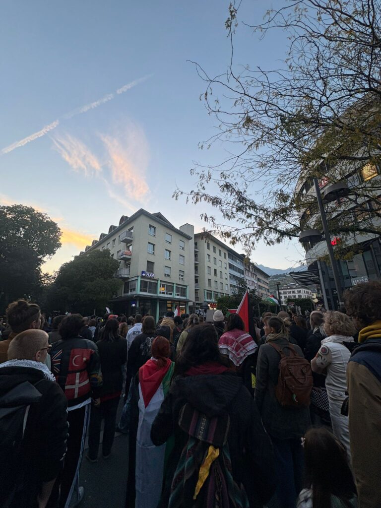 Valais kantonunun merkezi Sion’da buluşan kitle, özellikle gençlerin katılımıyla dikkat çekti. Sloganlar ve müziklerle meydan hareketliydi.