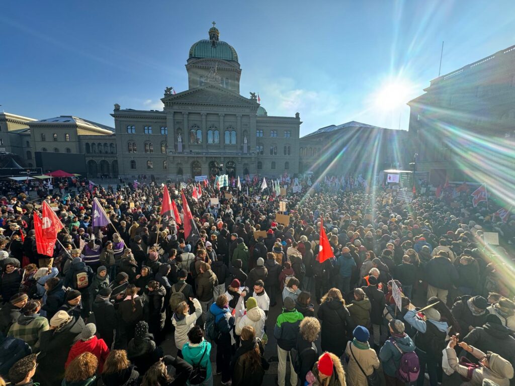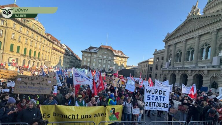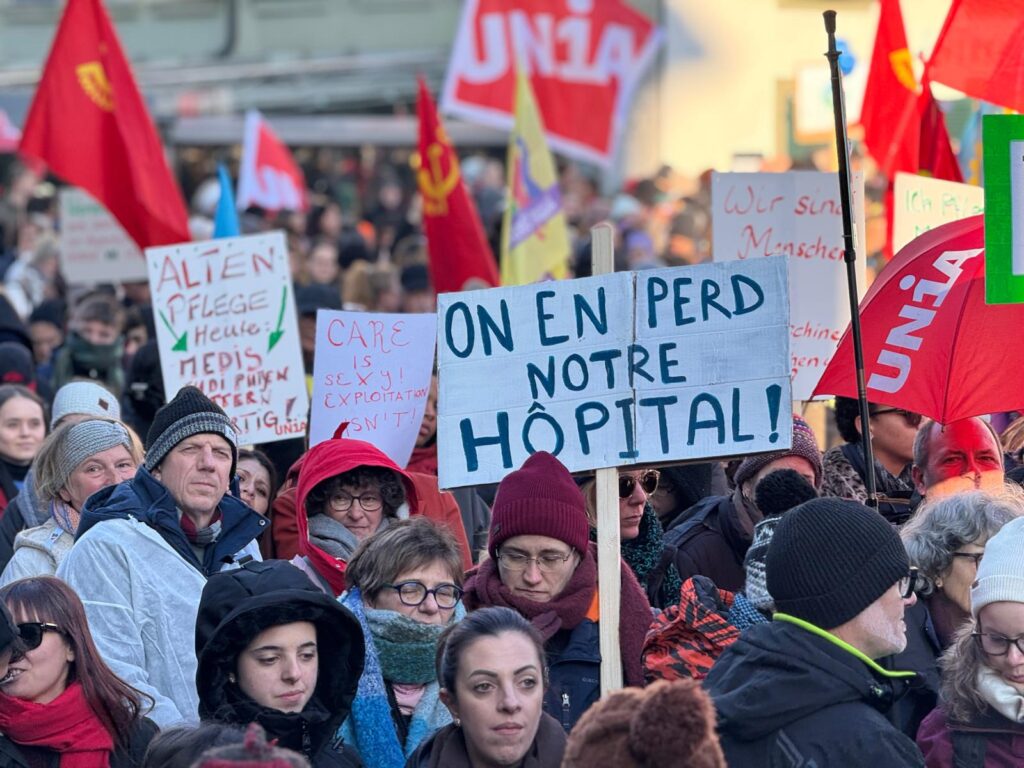 Başkent Bern’de toplanan sağlık emekçileri, ağırlaşan çalışma koşullarını, kabul edilen bakım girişiminin hâlâ uygulanmamasını ve sağlık sisteminin giderek piyasalaşmasını protesto etmek için Federal Parlamento önünde kitlesel bir miting düzenledi. Yaklaşık 5 bin kişinin katıldığı eylemin en güçlü sloganı “Sabır tükendi, kararlılık değil” oldu.