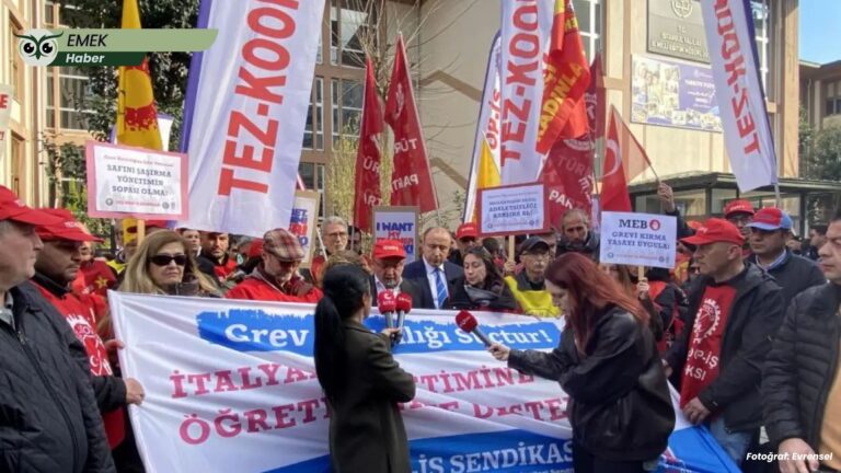 Tez Koop-İş Sendikası üyesi Özel İtalyan Lisesi öğretmenlerinin başlattığı grev 67. gününde sürüyor. Öğretmenler, İstanbul İl Milli Eğitim Müdürlüğü önünde bir araya gelerek hem okul yönetimine hem de Milli Eğitim Bakanlığı’na çağrıda bulundu.