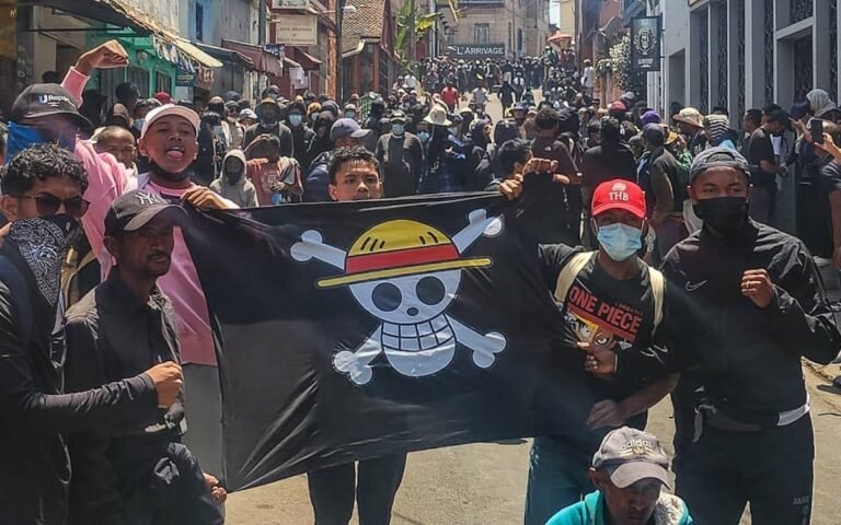 Fotoğraf: Fas’taki gençlik protestolarında taşınan küresel ortak simge/ Fotoğraf:anarchistfederation.net/