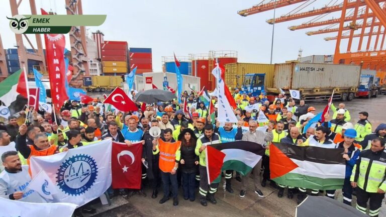 Liman-İş Sendikası, İsrail’in Filistin halkına yönelik saldırılarına ilişkin yazılı bir basın açıklaması yayımladı. Açıklamada, liman işçilerinin küresel ticaretin omurgası olduğu vurgulanırken, savaş ve silah sevkiyatlarına karşı net bir tutum alındığı ifade edildi