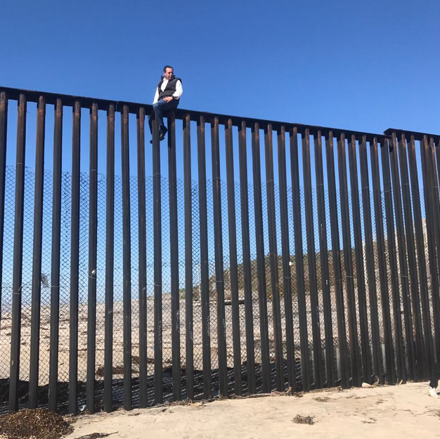 Meksikalı milletvekili ve hukukçu Braulio Guerra, ABD Başkanı Donald Trump’ın iki ülke arasına örmeyi planladığı duvarı protesto etmek için sınırdaki duvarın üzerine çıktı.