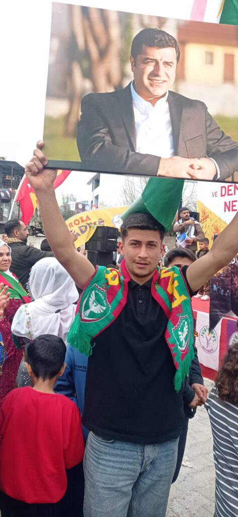 Aydın’ın Germencik ilçesine bağlı Ortaklar Mahallesi’nde düzenlenen kutlamaya çok sayıda kişi katıldı. Halaylar ve sloganlarla geçen etkinlikte DEM Parti temsilcileri konuşmalar yaptı.