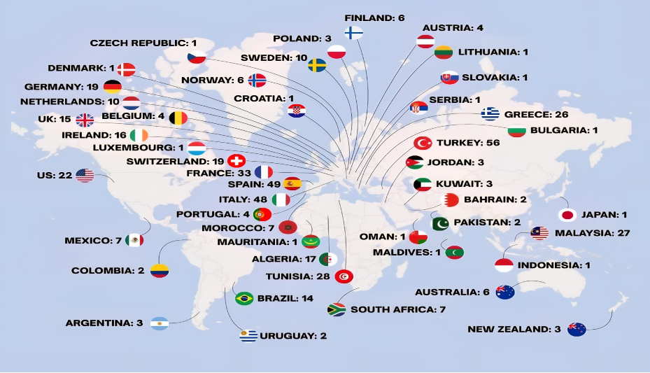 “Nehirden denize özgür Filistin”, üç tek tanrılı din yanında, bütün Akdeniz’e yayılan ticari ve kültürel bağlara da kaynaklık etti. F. Braudel’in sınırlarını zeytin, buğday, üzüm ve bunların etrafında şekillenen ticari ve kültürel etkileşimlerle çizdiği tarihi bir coğrafya. Bugünkü Filistin, Lübnan ve Suriye kıyılarından kalkan gemiler bütün bir Akdeniz’e bolluk ve bereket taşıdılar. Kapitalizmin doğuşuna sahne olan aynı ticaret rotalarından yola çıkan sumud tekneleri ise, yüzyıllar sonra kıtlık, açlık ve yoksulluk içindeki Filistin’e ulaşmaya çalıştı. Barcelona’dan ayrıldıkları andan itibaren Filo Akdeniz’i bir ucundan diğer ucuna bir eylem denizi haline getirirken bu tarihsel hafıza içinde de yolculuk yaptı. Bizlere kapitalist yağmayı, vicdansızlığı, yok edilen insanlık ve doğayı gösterdi. Filoya katılanların ülkelere göre dağılımlarını gösteren harita, eylemin görünen mekânsal izdüşümünün çok daha geniş bir tarihsel ve fiziksel coğrafyaya yayıldığının ifadesi olarak da görülebilir.