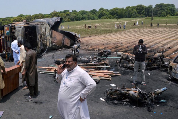 Pakistan'da petrol taşıyan bir tankerin devrilerek alev aldı. Kazada ölenlerin sayısı 153 oldu.