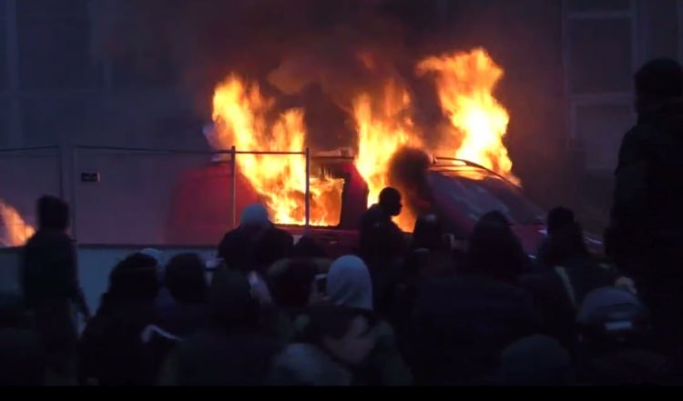 Kitle 'Theo'ya adalet', 'Polis tecavüz ediyor', 'Polis masumları öldürüyor' pankartları taşırken, akşam saatlerinde polis saldırısı gerçekleşti.
