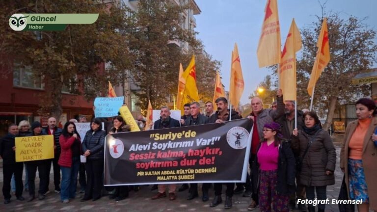 .Pir Sultan Abdal Kültür Derneği (PSAKD) Malatya Şubesi, Suriye’de Alevilere yönelik artan saldırıları protesto etti. Emeksiz Üst Kavşağı’nda yapılan basın açıklamasında, HTŞ’nin bölgede sistematik şiddet politikası yürüttüğü belirtilerek Türkiye, ABD, AB ve BM’ye sorumluluk çağrısı yapıldı.