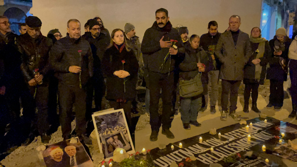 Depremde yıkılan ve 32 kişiye mezar olan Hatay’ın Antakya ilçesi Kışla Saray Mahallesi’nde bulunan 6 katlı Rana Apartmanı enkazında Adalet Peşinde Aileleri Platformu, depremin üçüncü yılında adalet nöbeti tuttu. Nöbeti, SYKP Eş Genel Başkanı Mercan Titiz, DİSK Genel Başkanı Arzu Çerkezoğlu ve IHD ile THIV yöneticisi Oya Ersoy ziyaret ederek birer konuşma yaptı.