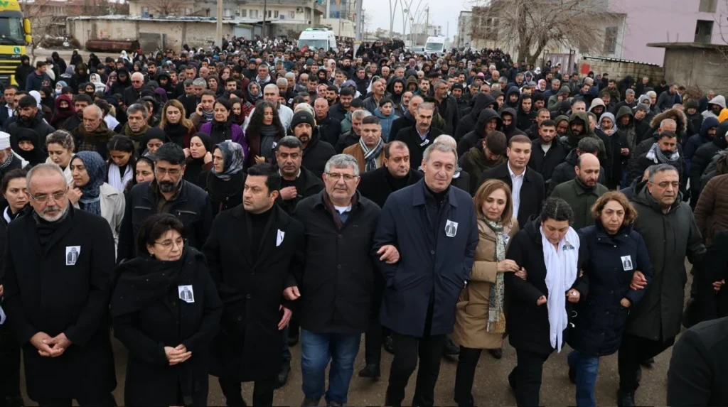 Cenaze törenine Halkların Eşitlik ve Demokrasi Partisi (DEM Parti) Eş Genel Başkanı Tuncer Bakırhan, Halkların Demokratik Kongresi (HDK) Eş Sözcüsü Meral Danış Beştaş, DEM Parti İmralı Heyeti üyesi Pervin Buldan, yerine kayyım atanan Mardin Büyükşehir Belediye Eşbaşkanı Ahmet Türk, Kürt siyasetçiler Leyla Zana, Gülten Kışanak, Sebahat Tuncel’in yanı sıra çok sayıda siyasi parti, demokratik kitle örgütü temsilcisi ve binlerce yurttaş katıldı.