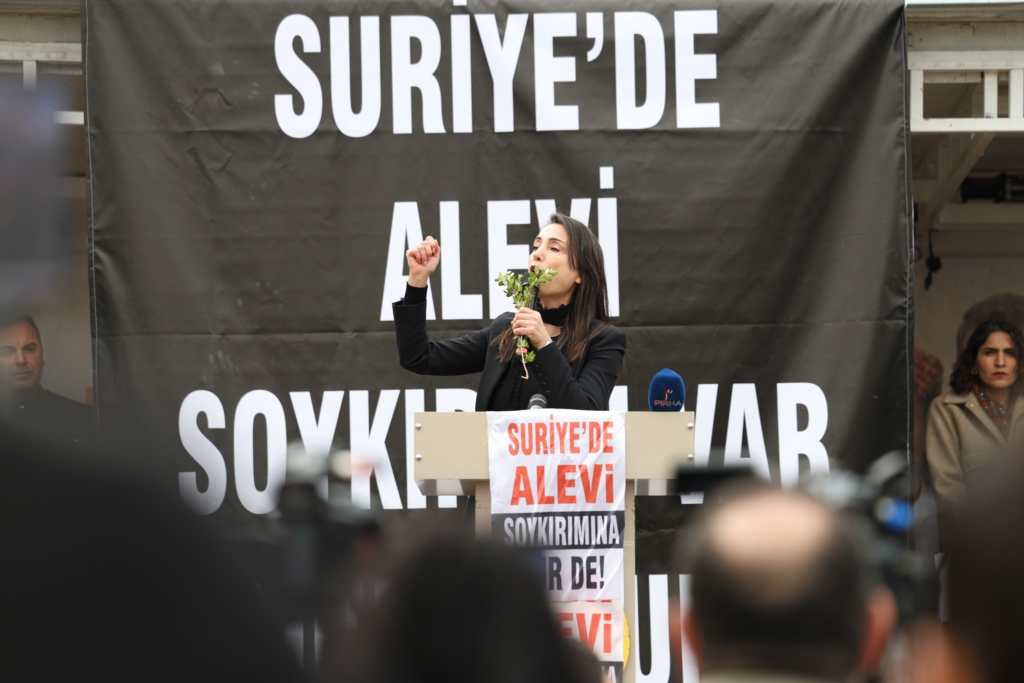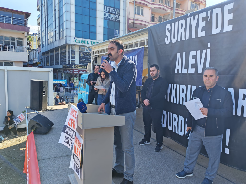 Mitingde yapılan konuşmalarda, Suriye’de başta Aleviler olmak üzere Kürtler, Dürziler ve farklı inanç ve etnik topluluklara yönelik saldırılara dikkat çekildi. Katliamlarda yaşamını yitirenler için bir dakikalık saygı duruşunda bulunuldu.