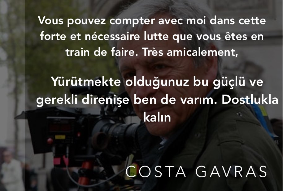 Gavras mesajında, “Bu güçlü direnişe ben de varım. Dostlukla kalın” dedi.